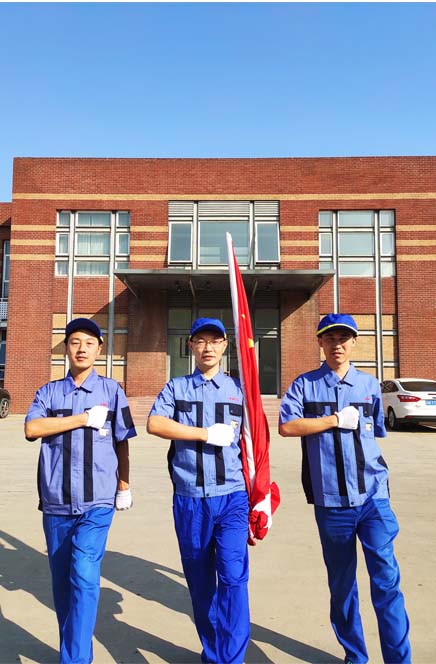 9月26日上午8:00,公司组织员工在前广场隆重举行庄严的升国旗仪式,庆祝建国70周年,公司领导及员工着装整齐,精神饱满参加此次升旗仪式。护旗手迈着矫健的步伐,将国旗护送到升旗台。