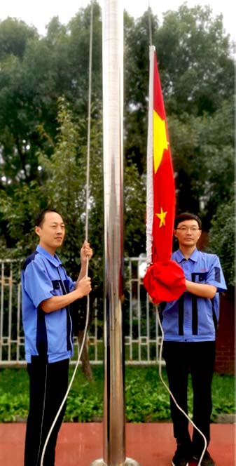 上午8时,伴随着雄壮的国歌声,鲜艳的五星红旗冉冉升起,在场人员整齐肃立,向五星红旗致敬,为祖国庆生。